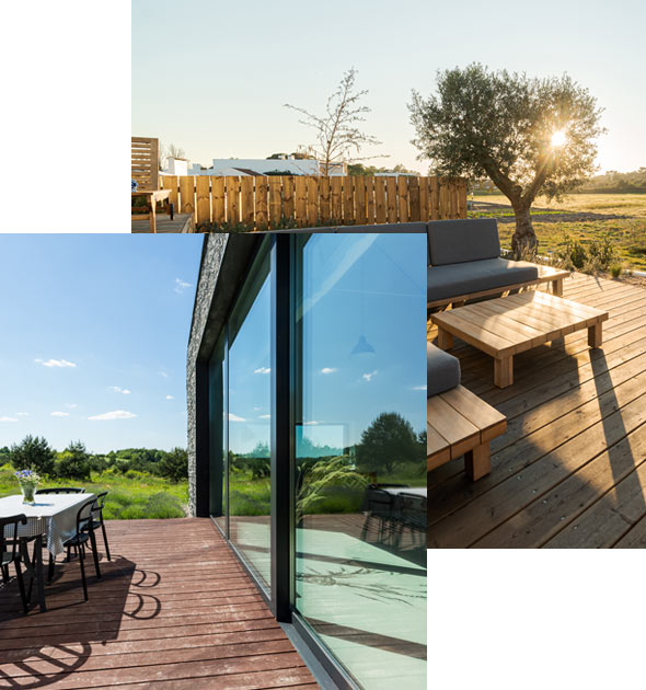 We build decks using various materials, including wood, aluminum, and pressure-treated decking, ensuring both durability and aesthetic appeal.