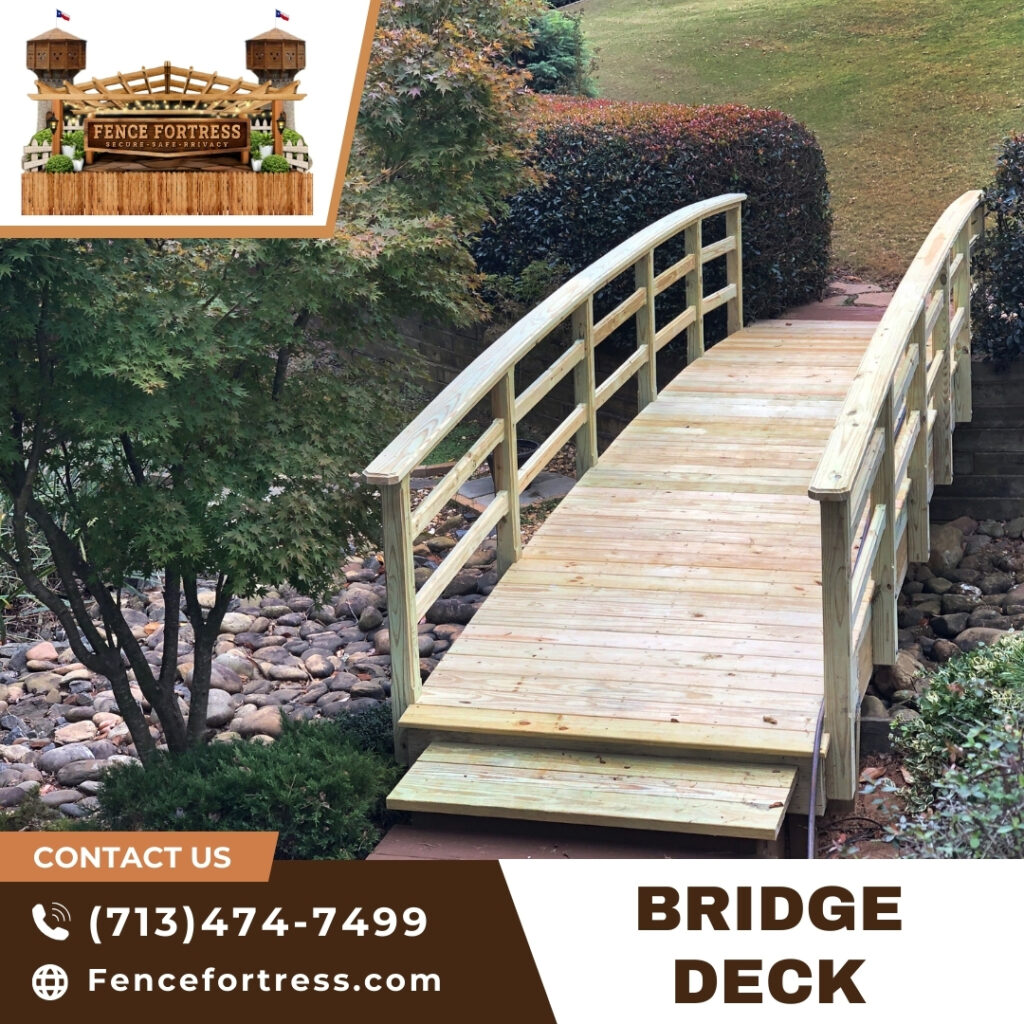 Fence Fortress is the leading provider of Bridge Decks in the Houston area, known for our dedication to quality, craftsmanship, and customer satisfaction. Our team of skilled professionals has extensive experience in designing and constructing Bridge Decks that not only enhance the aesthetic appeal of your property but also provide long-lasting functionality. We take pride in our ability to deliver custom Bridge Deck solutions that are tailored to the unique characteristics of your landscape, ensuring that your deck seamlessly integrates with your surroundings and meets your specific needs. At Fence Fortress, we use only the highest quality materials and employ meticulous construction practices to ensure that your Bridge Deck is built to withstand the elements and provide years of enjoyment. Our personalized approach means that we work closely with you throughout the entire process, from the initial consultation to the final installation, ensuring that your vision is realized down to the finest detail. With our expertise, attention to detail, and commitment to excellence, Fence Fortress is the top choice for homeowners looking to install Bridge Decks in Houston and the surrounding areas.