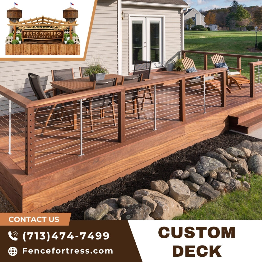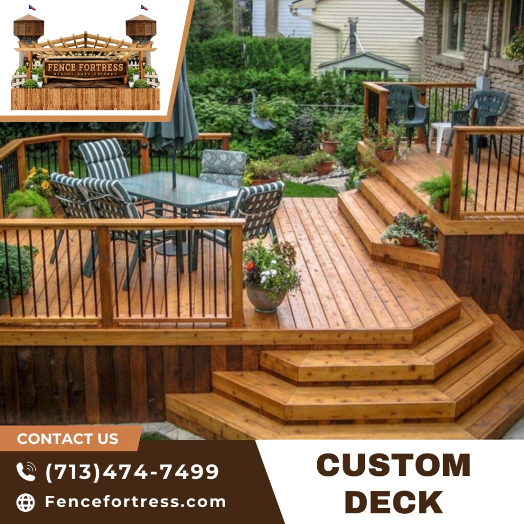 Fence Fortress is the premier provider of Custom Decks in the Houston area, known for our commitment to quality, craftsmanship, and customer satisfaction. Our team of skilled professionals is dedicated to creating Custom Decks that are as unique as the homeowners who envision them. We take pride in our ability to deliver bespoke deck solutions that not only enhance the beauty of your outdoor space but also provide long-lasting functionality. At Fence Fortress, we understand that a Custom Deck is a significant investment, which is why we use only the highest quality materials and employ meticulous construction practices to ensure that your deck is built to last. Our personalized approach means that we work closely with you throughout the entire process, from the initial consultation to the final installation, ensuring that your vision is realized down to the finest detail. With our expertise, attention to detail, and passion for creating beautiful outdoor spaces, Fence Fortress is the top choice for homeowners looking to install Custom Decks in Houston and the surrounding areas.